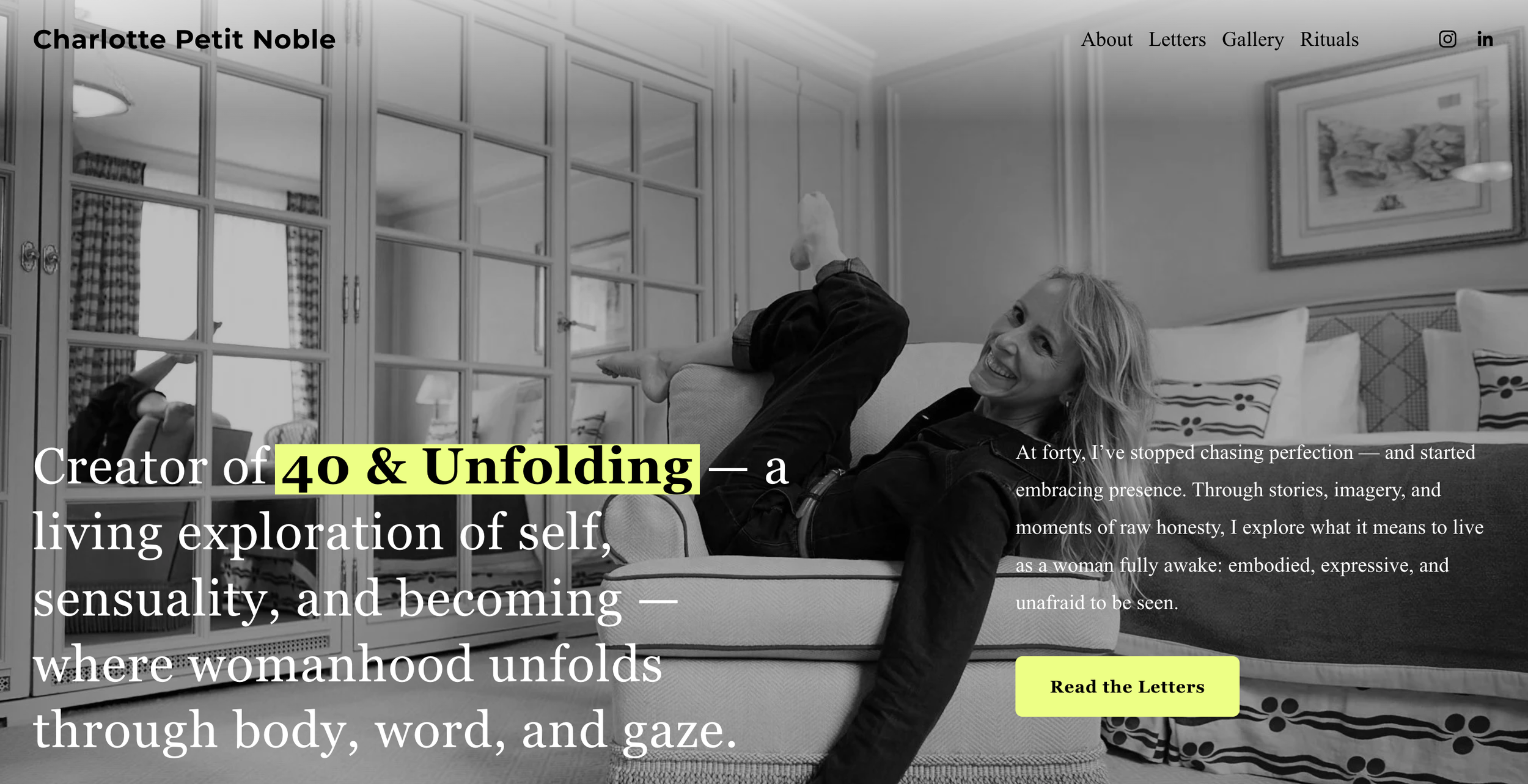 I designed the Squarespace website as a living gallery, blending poetic storytelling with minimalist design and cinematic imagery. Every page invites stillness and reflection — an exploration of sensuality, transformation, and the beauty of becoming. It represents the heart of my work: where creative direction becomes storytelling, and design becomes emotion.
